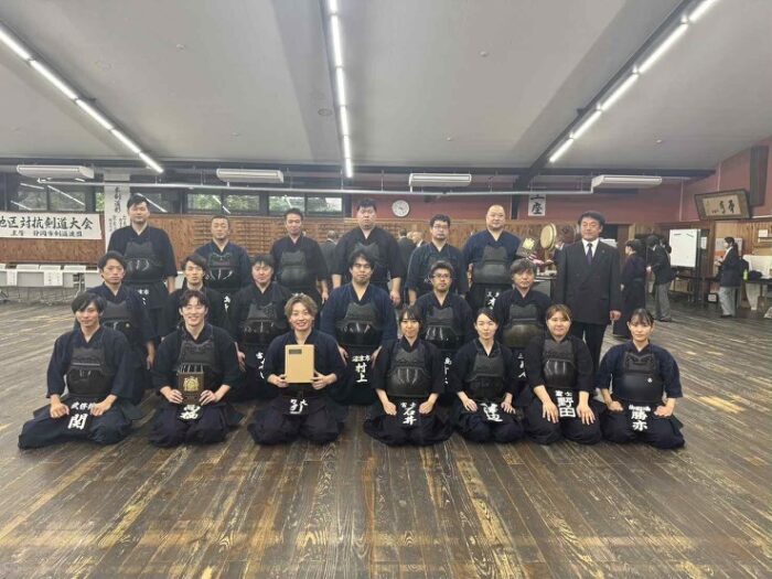 沼津市剣道連盟の大学生以上の会員が、月に1回は集まって稽古して昇段審査や各種大会に臨むことを目的としています。